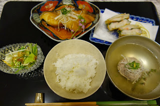 Japanese typical homy style dishes consists of one soup and three vegetables, fishes or meat dishes.
